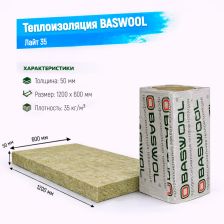 Утеплитель BASWOOL Вент Фасад 80 базальтовая плита 1200х600х50мм