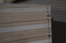 Произведенные из мелких древесных волокон, склеенных парафином или лигнином под давлением, плиты МДФ имеют плотную и однородную структуру. Процесс включает размол древесины и горячее прессование. Плиты выпускаются толщиной от 3 до 38 мм, стандартные размеры — 1220х2440 мм или 1830х2750 мм. Поверхность гладкая, идеальна для покраски, ламинирования, шпонирования. МДФ устойчивы к умеренной влажности, но не подходят для наружных работ. Экологичность высокая, так как лигнин или парафин безопаснее синтетических смол. Плиты легко режутся, фрезеруются, что делает их популярными в мебельном производстве. МДФ тяжелее ДВП, но прочнее, что позволяет использовать их в нагруженных конструкциях. Это универсальный материал для интерьеров и декора.